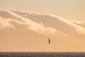Een paartje Wenkbrauwalbatrossen in een albatrossenkolonie op Saunders island.