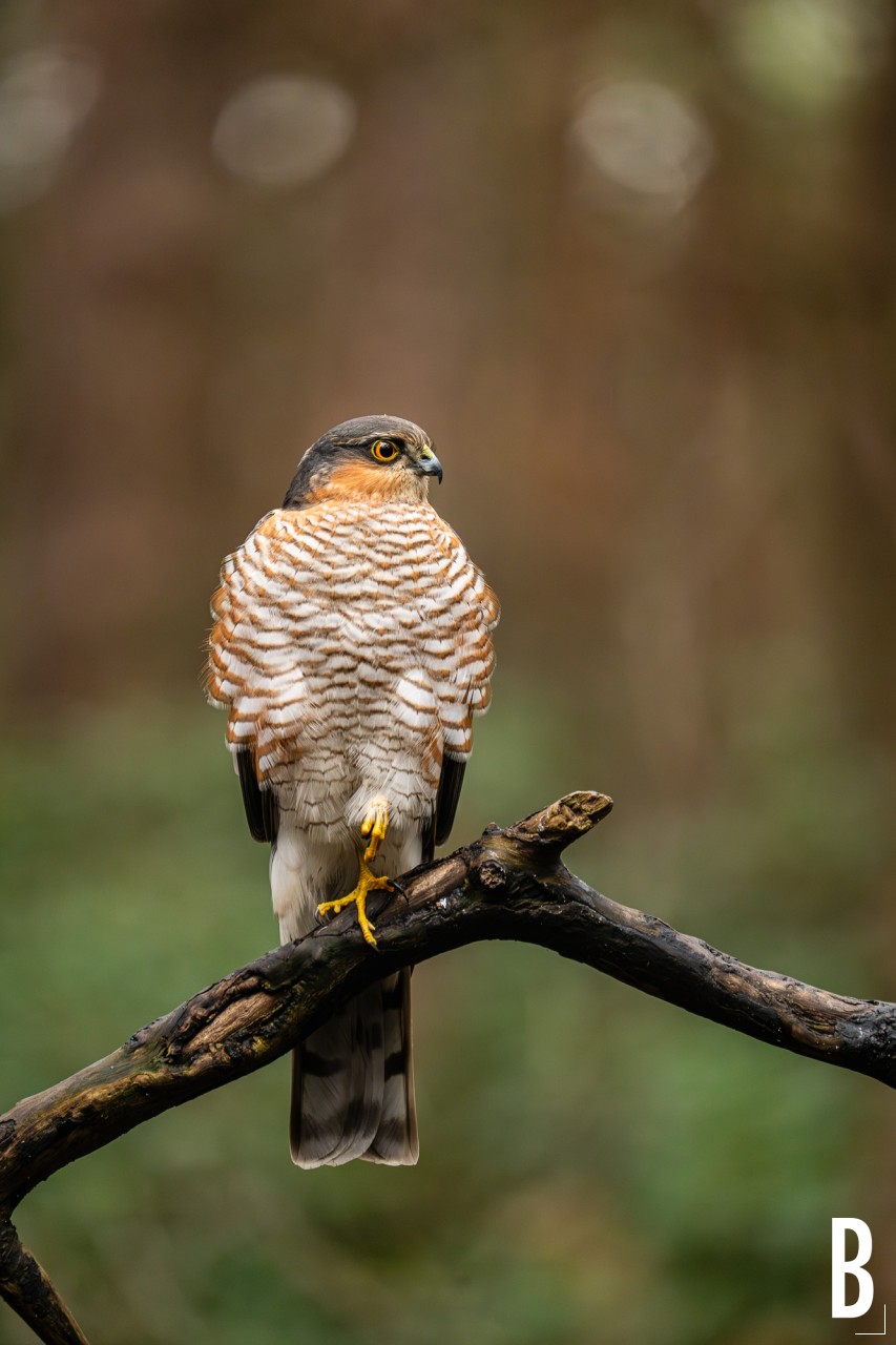 Detailopname van een mannetje sperwer (Accipiter nisus) bij de schuilhut.